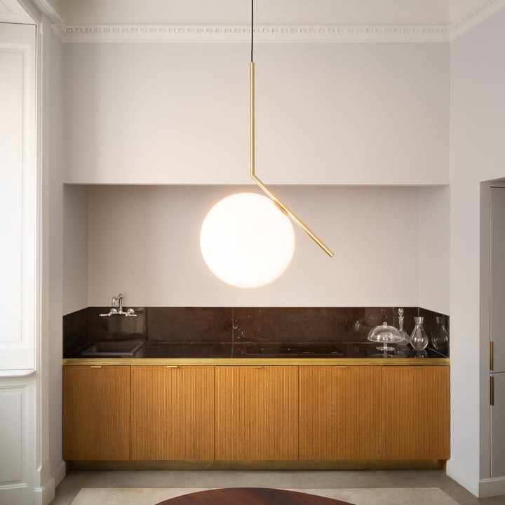 Das Design der Flos IC Pendelleuchte zeichnet sich durch den Kontrast zwischen filigranen Linien und voluminösen Leuchtkörpern, Metall und opalisiertem Glas aus. Diese Materialien erinnern an vergangene Zeiten, werden aber in einem modernen Kontext neu interpretiert. Der matte Leuchtenkopf aus Opalglas sorgt für sanftes Licht, das blendfrei im Raum verteilt wird. Besonders geeignet ist die Leuchte für Wohnzimmer, Schlafzimmer, Esszimmer und moderne Büros, um eine angenehme und behagliche Atmosphäre zu schaffen.