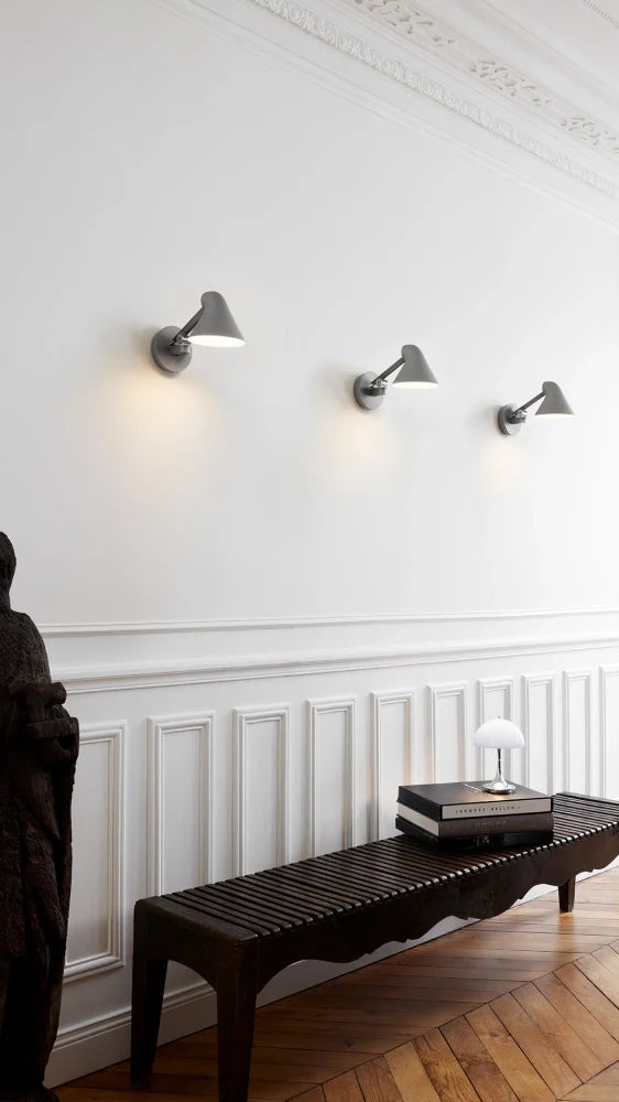 Die Wandlampe sendet ein direktes und Blendungsfreies, horizontales Licht und gleichzeitig wird ein Teil des Lichts von dem Kopf nach hinten reflektiert und beleuchtet so den obersten Teil des Armes. Ein simples mechanisches System gibt eine grosse bewegungsfreiheit, so das das Licht immer optimal an der Arbeitsfläche eingestellt werden kann. Der Schirm ist an der Innenseite Weiss lakiert und das gibt ein angenehmes und diffuses Licht.