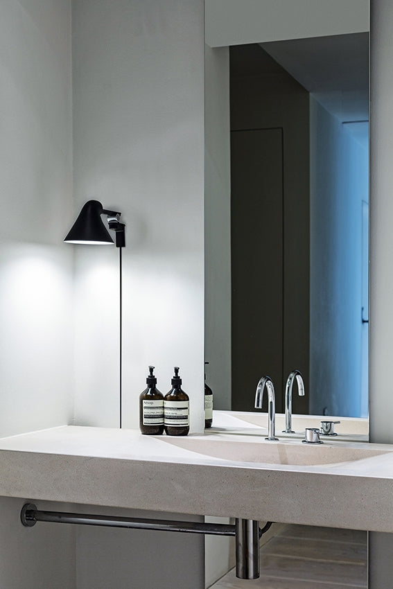 Die NJP Wandlampe mit einem kurz Arm in schwarz ist eine schöne und einfache Wandlampe designet von Oki Sato.